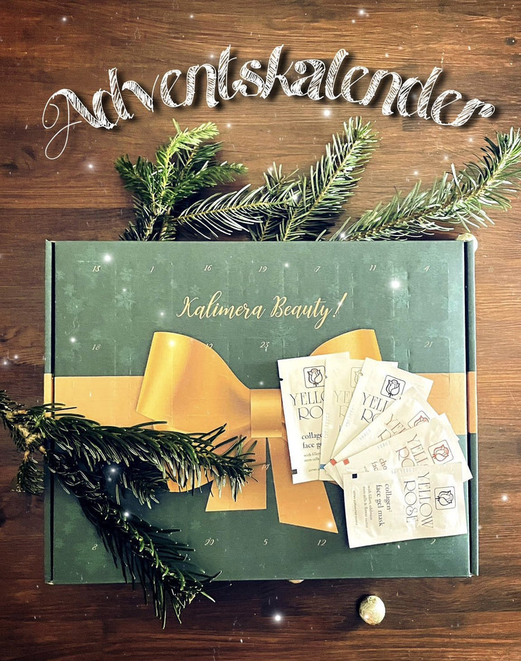 Willkommen im Yellow Rose Cosmetics ADVENTSKALENDER! Wir freuen uns, Ihnen und Ihren Liebsten etwas Besonderes für die gesamte Adventszeit anzubieten. Hinter den 24 verschlossenen Türchen erwarten Sie kleine Proben verschiedener Produkte unserer Firma, jeweils 3 ml im Wert von 2€/St, 3 Ampullen mit Kollagen à 3 ml, im Wert von je 6€, ein Überraschungs-Nikolausprodukt, 50 ml, im Wert von 22€, köstliche kleine Schokoladen und das Beste von allem - am 24. Dezember erhalten Sie in Originalgröße von 50 ml eine unserer Cremes Ihrer Wahl im Wert von ca. 50€! Zusammen kostet dieses exklusive Erlebnis nur 119€.