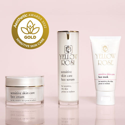 Willkommen bei Yellow Rose SENSITIVE LINIE in unserem Online-Shop.-die Spezialpflege für trockene, empfindliche und zu Rötungen neigende Haut mit einer sanften Anti-Falten-Wirkung. Entdecken Sie eine einzigartige Mischung aus Präbiotika, fortschrittlichen beruhigenden Wirkstoffen, Ceramiden, Centella-Extrakt, Hyaluronsäure, Kollagen sowie pflegenden und feuchtigkeitsspendenden Inhaltsstoffen, die speziell entwickelt wurde, um empfindliche Haut zu beruhigen und zu pflegen.